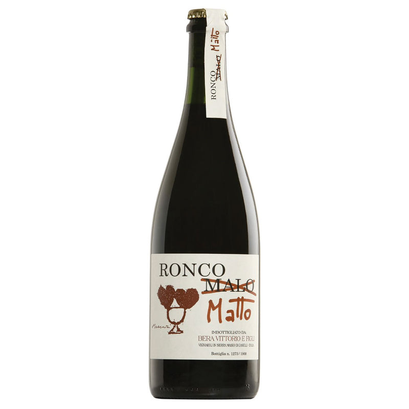 Il Ronco Matto di Bera è un rifermentato ancestrale rosso freschissimo, a bassa pressione e bassa gradazione alcolica. È un vino leggiadro, gustoso e inebriante, dal tannino leggero e croccante che accompagna una beva straordinaria.